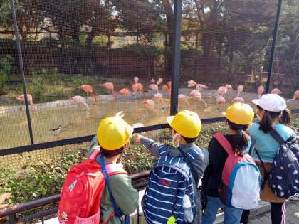 鳥の種類もたくさん見ました。 動物園内から、あべのハルカスが見えます。