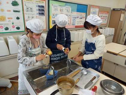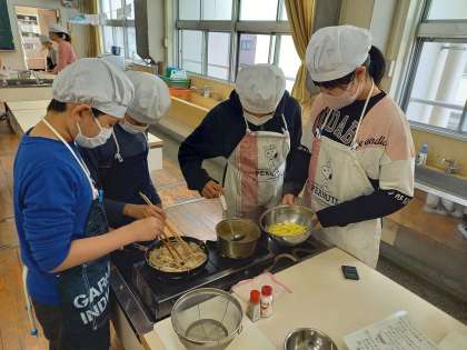 調理実習(6年家庭科) (11月25日) 公開日 2021/11/25 更新日 2021/11/25 お知らせ 昨日から6年生は家庭科の時間に調理実習に取り組んでいます。 今日は2組が挑戦です。 男の子も女の子も、班で協力をして調理をすすめています。 茹でたじゃがいもに、玉ねぎとベーコン、塩こしょうを加えて炒めると、美味しそうな“ジャーマンポテト”の完成です! いいね(0)