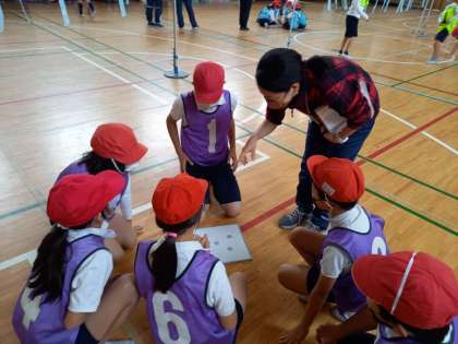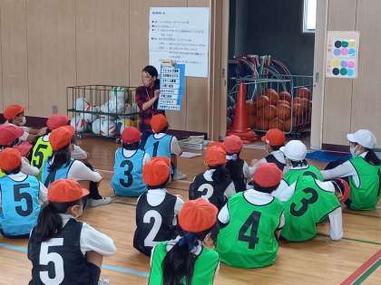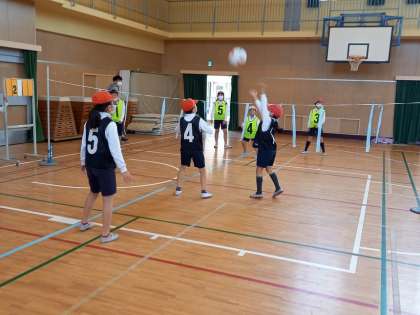 キャッチバレーボール(4年体育) (11月30日) 公開日 2021/11/30 更新日 2021/11/30 お知らせ 4年生の体育は「ボール」を使った運動に取り組んでいます。 今日は「キャッチバレーボール」に挑戦しました。 「キャッチバレーボール」は、両手でボールをとることができる「バレーボール」を簡単にした運動で、小さい子どもでも手軽に取り組めるスポーツです。 今日は6つのチームに分かれて、各チームが作戦を立て、白熱したゲームが展開されました! いいね(0)