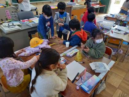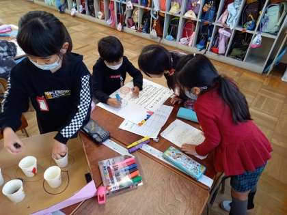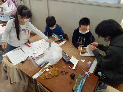 あきまつりのじゅんびをしよう(1年生活科) (12月2日) 公開日 2021/12/02 更新日 2021/12/02 お知らせ 季節は晩秋から初冬へと向かい、寒い日も多くなってきましたが、1年生は“あきみつけ”で拾ったどんぐりや葉っぱ、松ぼっくりなどを使った“あきまつり”の準備をしています。 みんなが楽しく遊べるよう、さまざまな“おみせやさん”が一生懸命に準備をすすめています! いいね(0)