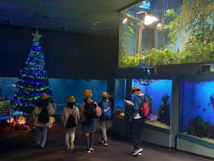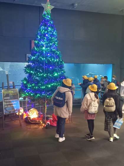 館内はクリスマスツリーなど、イルミネーションで飾られていました。