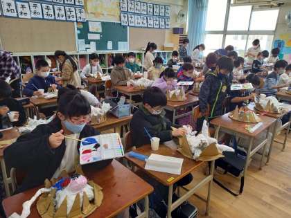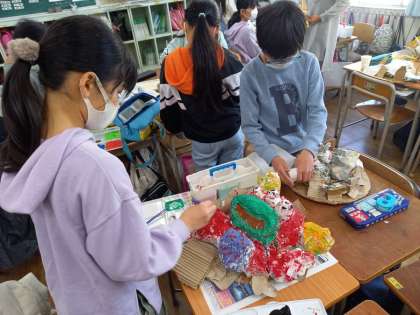 4年生は図画工作の時間に「モンスター」のお面を作っています。