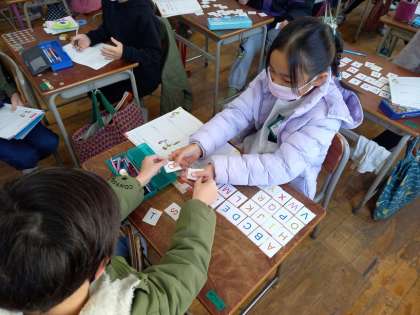 ALPHABET(3年外国語活動) (12月13日) 公開日 2021/12/13 更新日 2021/12/13 お知らせ 3年生は外国語活動の時間に「ALPHABET」の学習をしています。 ALPHABETの大文字と小文字の違いや共通点クイズ形式で探したり、自分の名前や友だちの名前の頭文字(イニシャル)を、紹介し合ったりと、子どもたちが意欲的に取り組めるような内容を取り入れながら学習をすすめています。 いいね(0)