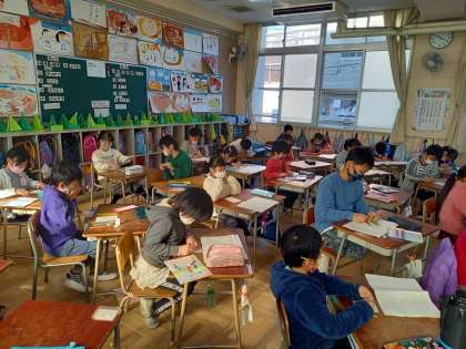 はがきを書こう(2年) (12月14日) 公開日 2021/12/14 更新日 2021/12/14 お知らせ お正月を前に、“年賀状”を書く機会も増えてくると思いますが、2年生では“はがき”を書く練習をしています。 宛名面の書き方や、裏面の文章の書き方などを練習し、実際に郵便はがきに書いたものを投函しました。 さて、だれに届くのでしょうか…? いいね(0)