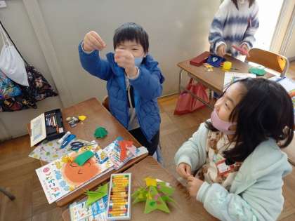 季節柄、クリスマスツリーを作る子が多かったですが、動物を作る子もたくさんいましたよ!