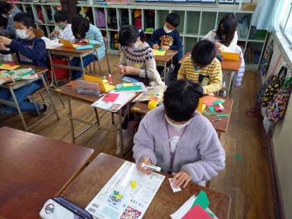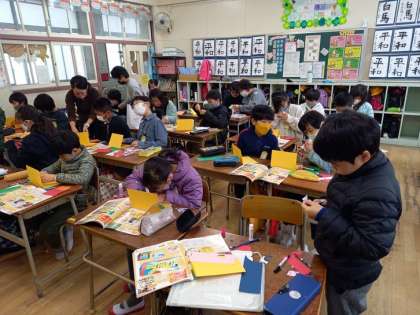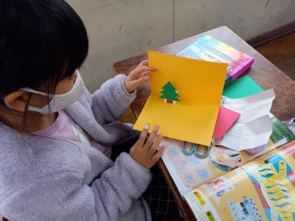 クリスマスカードをつくろう(4年図画工作) (12月17日) 公開日 2021/12/17 更新日 2021/12/17 お知らせ 2学期もいよいよ終わりに近づいてきました。 子どもたちが楽しみにしているクリスマスやお正月も目の前に迫ってきましたね。 4年生(1組)では、今日、クリスマスカードづくりをしていました。 カードを開くと、立体が飛び出す仕組みのものを考えて作っています。 いいね(0)