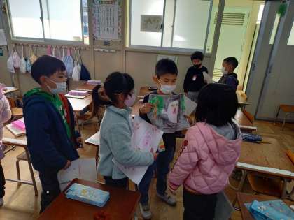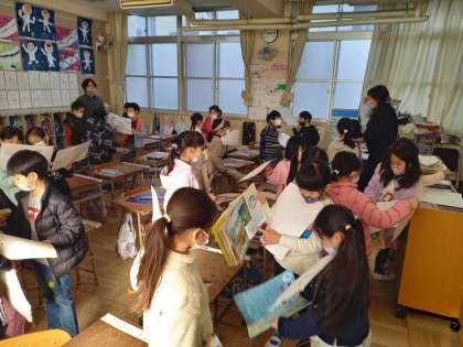 すきなおはなしはなにかな(1年国語) (12月20日) 公開日 2021/12/20 更新日 2021/12/20 お知らせ 1年生の国語は「すきなおはなしはなにかな」の学習に入ります。 小学校にあがってから、子どもたちはたくさんの本を読んできましたが、その中でも特にお気に入りの一冊をみんなに紹介したいと思います。 「しょうかいカード」にどんな人物が登場して、どんな場面が好きかなどを書き込み、クラスの中で紹介しあっていきます。 いいね(0)
