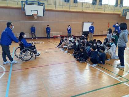 港区社会福祉協議会のみなさまにご協力いただき、子どもたちに「車いす」と「車いすを利用する方々」への理解を深めるために、各学級1時間ずつ授業が行われました。