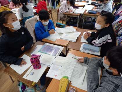 聞いてほしいな、心に残っている出来事(4年国語) (12月22日) 公開日 2021/12/22 更新日 2021/12/22 お知らせ 4年生の国語は「聞いてほしいな、心に残っている出来事」のまとめの学習に入っています。 自分の思い出の中で、特に印象に残っている出来事について原稿用紙にまとめていき、自分の感じたことが相手に伝わるよう、言葉の抑揚や強弱、間の取り方などを工夫して発表をしていきます。 いいね(0)