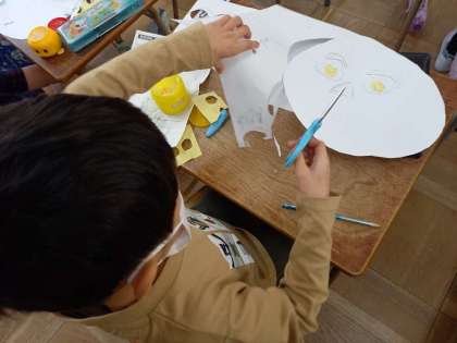かみはんが(1年図画工作) (1月13日) 公開日 2022/01/14 更新日 2022/01/14 お知らせ 1年生は図画工作の時間に、「かみはんが」に挑戦します。 テーマは「じぶんのかお」です! 画用紙を使ってまずは顔の輪郭を切り取り、次に目や鼻、耳などのパーツを切り取っていきます。 大きさのバランスを考えて切り取っていくのがなかなか難しいです! いいね(0)
