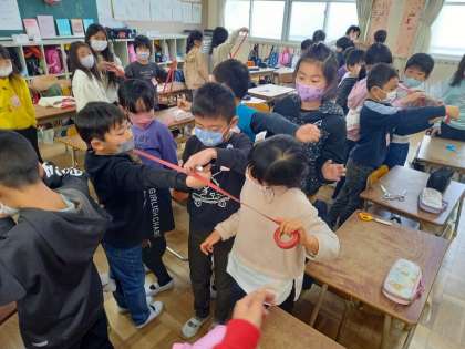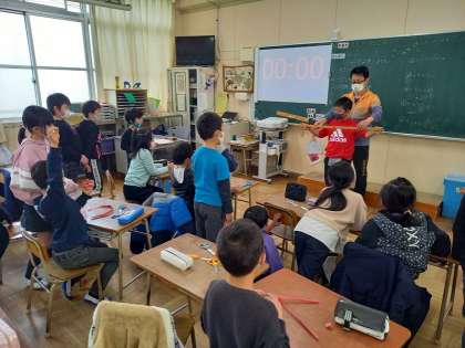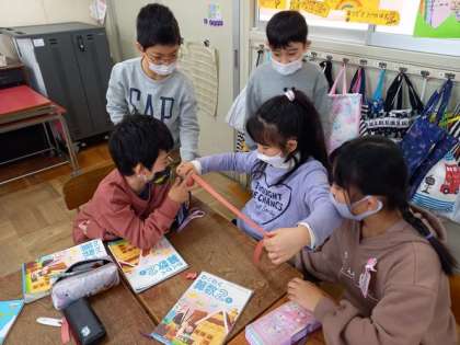 100cmをこえる長さ(2年算数) (1月17日) 公開日 2022/01/17 更新日 2022/01/17 お知らせ 2年生は算数の時間に「100cmをこえる長さ」の学習をしています。 100cmをこえる長さはどのように表していけばよいか、今まで耳にしたことのある「m(メートル)」という単位を使って表すことを学んでいきます。 今日は、「1m」という長さが実際どのぐらいのものなのか、実際に予想し、測定してみて、その量感を身につけていきました。 いいね(0)