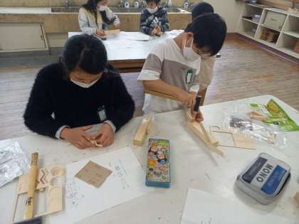くぎうちトントン(3年図画工作) (1月18日) 公開日 2022/01/18 更新日 2022/01/18 お知らせ 3年生は図画工作の時間に、木片と金づちを使った作品作りに取り組んでいます。 金づちを使った経験のある子は少ないようですが、逆にそれが新鮮なのか、みんな熱心に金づちで釘を打ちつけていきます。 “トントン トントン” 小気味の良い音が図工室に響き渡ります。 いいね(0)