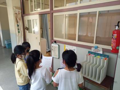 毎年1学期当初に、2年生が1年生を連れて学校の中を紹介する「がっこうたんけん」が行われます。