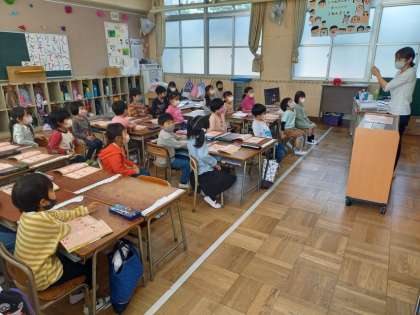 1年生の学習の様子です。 道徳や音楽、国語の学習をしています。