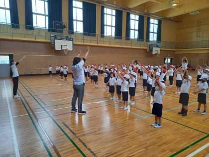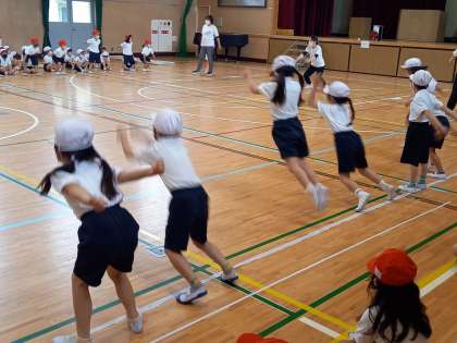 たちはばとび(1年体育) (5月12日) 公開日 2022/05/12 更新日 2022/05/12 お知らせ 来週からスポーツテストが始まりますが、1年生は今日、体育館で「たちはばとび」の練習をしました。 足を肩幅に開き、ひざを曲げて両腕で反動をつけて遠くに着地できるよう練習をします。 練習を重ねるにつれて跳べる距離が伸びていくので、子どもたちは嬉しそうな表情で練習に取り組んでいましたよ! いいね(0)