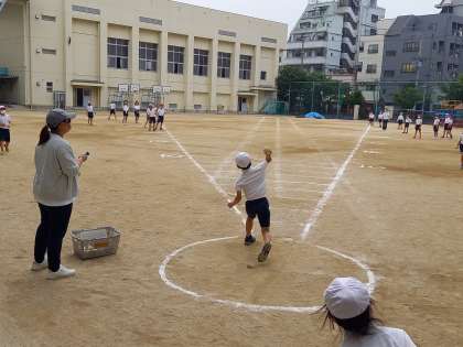 今日は、3年生と4年生がソフトボール投げに挑戦です!