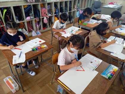 絵のぐでぬろう(2年図画工作) (5月25日) 公開日 2022/05/25 更新日 2022/05/25 お知らせ 2年生は図画工作の時間に、初めて「絵のぐ」を使った作品作りに取り組んでいきます。 今日は、パレットの使い方や絵筆の使い方、筆洗バケツの使い方など、基本的なことを先生から丁寧に教えてもらいました。 その後さっそく、画用紙に試し塗りです! どの子も、嬉しそうに絵筆で色を塗ったり、線を描いたりしていましたよ! いいね(0)