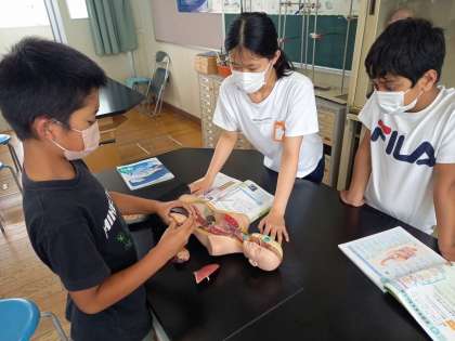今日は人体模型を使って、実際のヒトの体のつくりについて学習をしました。