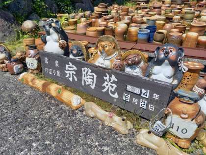 宗陶園に到着です。 たくさんのたぬきが、お出迎えです!