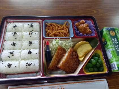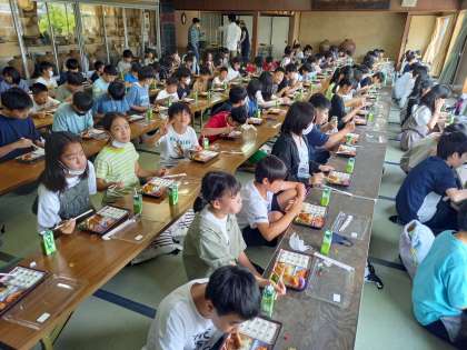 お昼ごはんです! みんな黙食で、とてもお行儀がいいです!