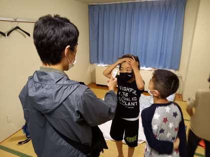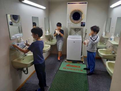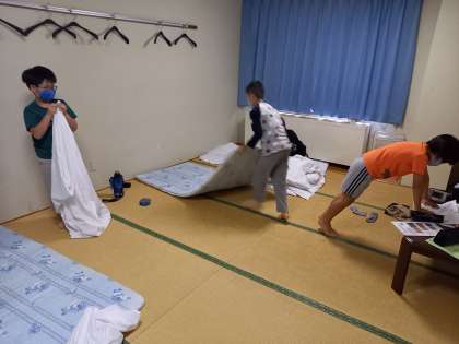 6時起床、昨晩は布団に入ると早く眠りについた子も多かったです。 朝の用意と検温をしています。