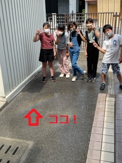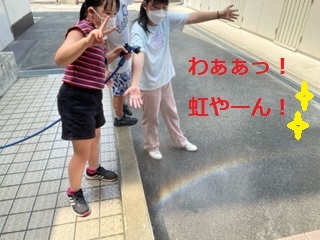 給食委員会では、各学級が給食を返しにきた後に給食室の周りをきれいにします。そんなときの一コマです。強い日差しに水‼一足早く夏を感じました。