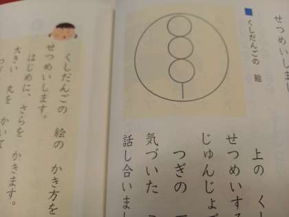 丸や三角、四角などを使った絵の描き方を言葉だけで説明するという学習で、これがなかなか難しい!