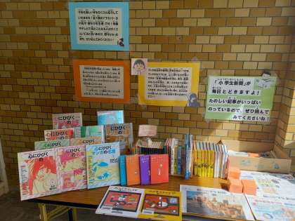 紹介した本は、子どもたちが手に取りやすいよう、登下校時に通る玄関脇に展示しています。