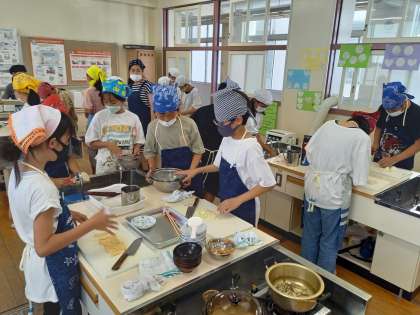 昨年度はコロナ禍の影響で調理実習ができなかったため、6年生にとっては家庭科の時間に行う初めての調理実習となります。