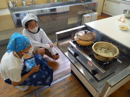 ごはんをお鍋で炊いたり、味噌汁の出汁を煮干しでとったりすることは、子どもたちにとってほぼ初体験のことです。