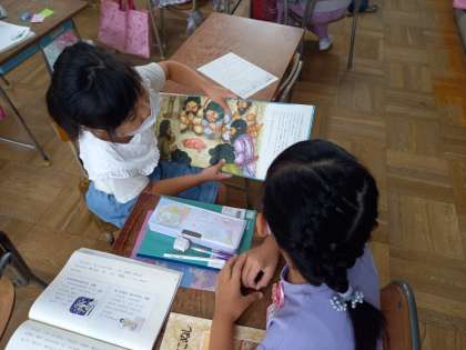 言いつたえられているお話を知ろう(2年国語) (7月12日) 公開日 2022/07/12 更新日 2022/07/12 お知らせ 2年生は国語の時間に「言いつたえられているお話を知ろう」の学習をしています。 日本には昔から言い伝えられているお話がたくさんあります。民話や昔話、神話など、さまざまなジャンルのお話が多くの人に読み継がれてきています。 2年生は教科書に載っているお話以外に、学級文庫や図書館の本を活用して、自分が読んだ本を声に出して読み、クラスのお友達にきいてもらっています。 いいね(0)