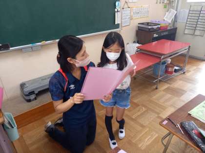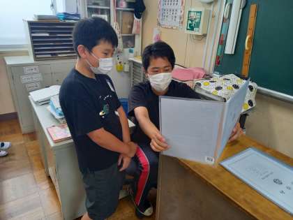 担任の先生から、通知表を受け取ります。 ワクワク、ドキドキ…。