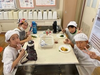 最後の1枚は今日の調理実習の試食風景です。「おいしい!」「家でも作ってみるわー。」とそれぞれの感想を話してくれました。
