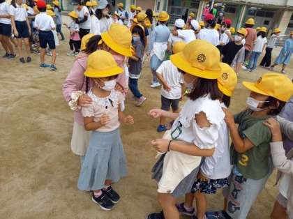 低学年から高学年までの子どもたちが一緒になって「じゃんけん列車」のゲームを楽しみました!