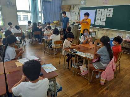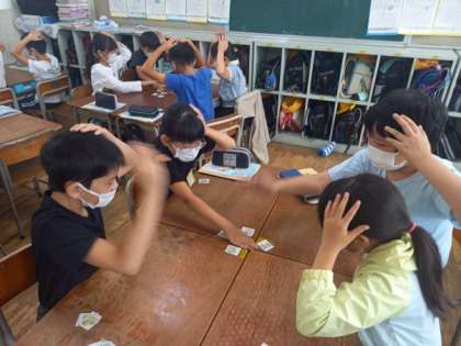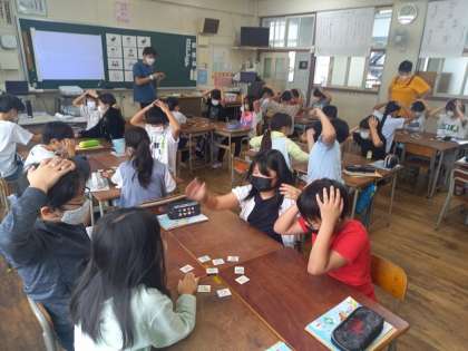 英語で「かるた」とり(4年外国語活動) (9月22日) 公開日 2022/09/22 更新日 2022/09/22 お知らせ 4年生の外国語活動は英語で「かるた」とりをしています。 読み手の先生が英語で書かれた読み札を読みあげると、子どもたちは英語で書かれた取り札を競って取ります。 まさに英語版の「かるた」とりです! いいね(0)