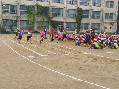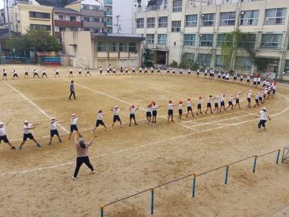 体育の時間には、各学年が運動会の練習に取り組んでいます。
