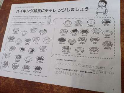 栄養指導(6年) (10月5日) 公開日 2022/10/05 更新日 2022/10/05 お知らせ 今日は6年(1組)で栄養指導が行われました。 プリント上に描かれたたくさんの料理の中から、自分でメニューを決めていく「バイキング給食」を子どもたちは体験しました。 そこで自分の選んだメニューは、はたして栄養バランス的にどうなのか考えていきます。 いいね(0)