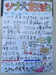 「ツナ大豆そぼろ」は、子どもたちに「もっと豆を!!」
