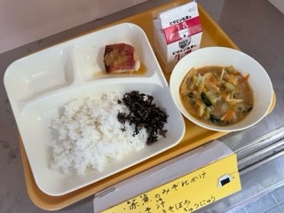 10月25日(火)、今日の給食は「赤魚のみぞれかけ・みそ汁・牛ひじきそぼろ・ごはん・牛乳」です。