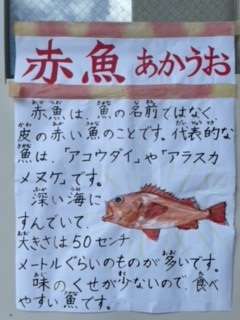 赤魚は、子どもたちに人気の魚です。白身で、くせがなく、骨も取りやすいので食べやすいです。今日は、塩で下味をつけてオーブンで蒸し焼きにした赤魚に、だいこんおろし、みりん、うすくちしょうゆ、ゆず果汁で作った手作りのおろしポン酢をかけています。
