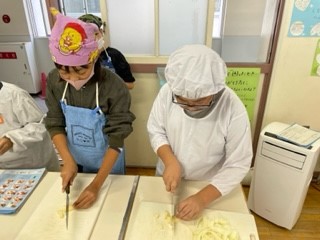 6年 調理実習 公開日 2022/10/27 更新日 2022/10/27 給食 今日は、6年生の調理実習がありました。調理献立は「ジャーマンポテト」です。 「食べたことないな〜」「じゃがいもの切り方は、こうかな?」「たまねぎは、あめ色になるまで炒めるんかな?」…とあれやこれやと考えながら実習することができました。 いいね(0)