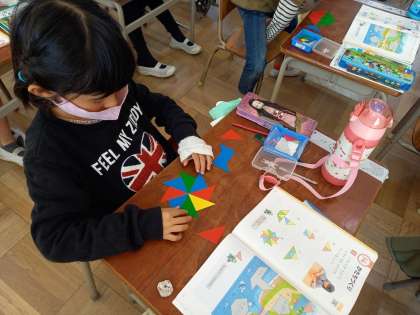 かたちづくり(1年算数) (11月9日) 公開日 2022/11/09 更新日 2022/11/09 お知らせ 1年生の算数の学習は「かたちづくり」の単元に入りました。 色板をならべて、色々な形を並べるところから学習が始まります。 いいね(0)