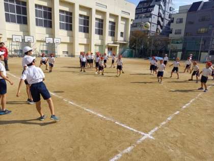 2学年の差があるので、「おにごっこ」も「ドッジボール」も5年生が有利かな?と思いましたが、3年生が大健闘!とても白熱した展開となり、みんなとても楽しそうな表情をしていました!