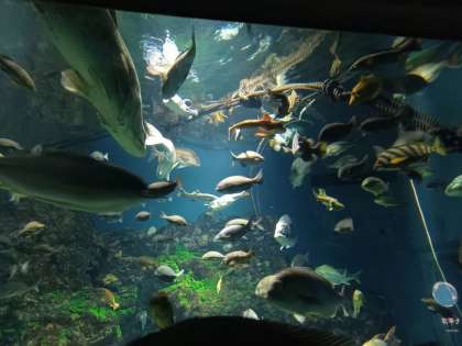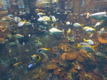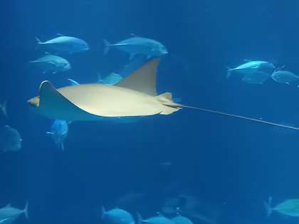 たくさんの魚たちと、優雅に泳ぐエイです。