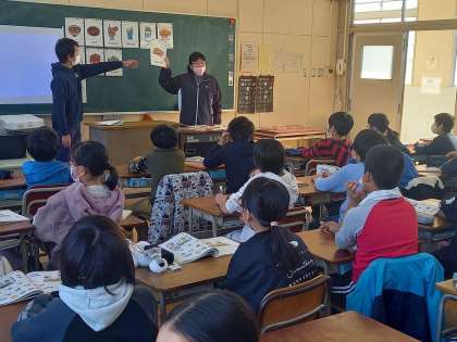 What would you like?(5年外国語) (12月15日) 公開日 2022/12/15 更新日 2022/12/15 お知らせ 5年生の外国語の学習に、英語を使って料理を注文したり、値段を尋ねたりする学習があります。 今日は、フラッシュカードを使って料理の名前をテンポよく発音したあと、教科書付録の“料理カード”を使ったゲームを行い、子どもたちは楽しみながら英語学習に取り組むことができていました。 いいね(0)