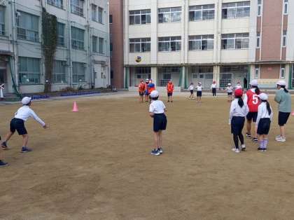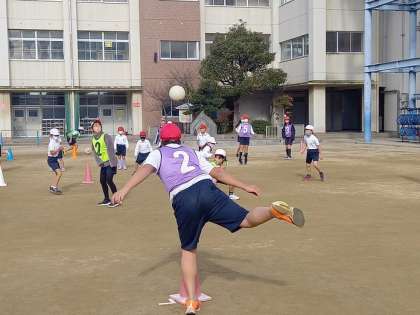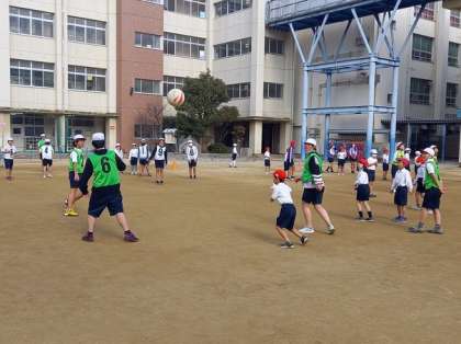 2年生の子どもたちは、おにいさん、おねえさんとドッジボールができてとてもうれしそうでした!