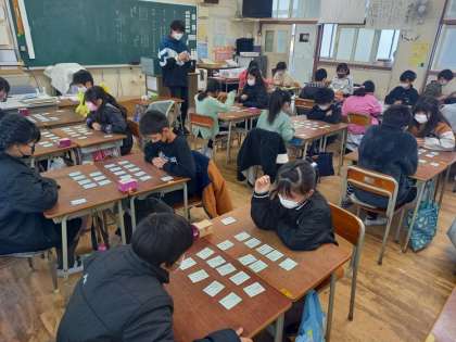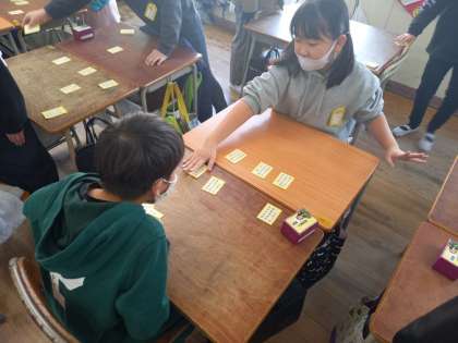 百人一首の世界(4年国語) (1月12日) 公開日 2023/01/12 更新日 2023/01/12 お知らせ 4年生の国語は「百人一首」の学習からスタートです。 「百人一首」は「五・七・五・七・七」で表現される短い詩で、この短い詩の中に、季節や自然、人生や人を思う心などを見事に表現しています。 声を出して読むことで、昔の人の気持ちをより感じ取ることができますね。 今日は先生が「読み手」となって、「かるた遊び」をしました! いいね(0)