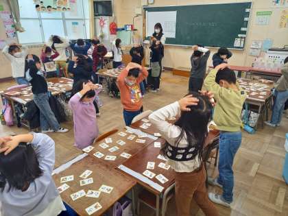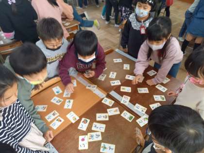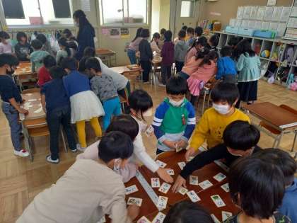 むかしあそび(1年生活科) (1月13日) 公開日 2023/01/13 更新日 2023/01/13 お知らせ 1年生は生活科の授業で「むかしあそび」を体験する学習があります。 今日は「かるたあそび」をみんなでしました。 読み手を先生が行い、子どもたちはグループに分かれて「かるたあそび」を楽しみました! いいね(0)