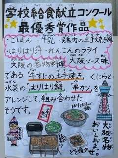 今日は、昨年度の学校給食献立コンクールの最優秀賞作品の献立です。平野区の平野中学校の生徒が考えました。