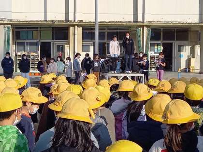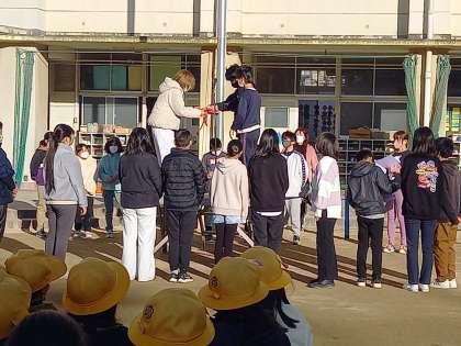 今日、25日の児童集会では、給食委員会による給食週間の発表をしました。給食の歴史の話や給食ものしりクイズをしたり、また、給食調理員さんに感謝のことばを述べ、全校児童がひとりひとり書いた給食調理員さんへのメッセージカードを渡したりしました。